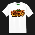 Make a bold statement with this premium white t-shirt featuring the iconic Cali-Po graffiti-style logo in vibrant orange and yellow